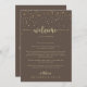 Esta carta de boas-vindas do casamento marrom de confete de ouro é perfeita para um casamento rústico. O design simples e elegante apresenta a tipografia clássica e de rico em ouro. Personalize a frente com uma mensagem de boas-vindas para seus convidados e seus nomes. Personalize as costas com a programação de eventos e outras informações úteis.