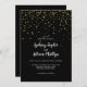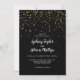 Este Dourado Confetti | O convite casual preto é perfeito para um casamento simples e clássico. O elegante design apresenta um confete de brilho dourado falso e uma caligrafia minimalista a preto com uma moderna sensação de vaivém.