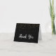 Este elegante Confetti Dourado no cartões de agradecimentos de aniversário Negro é perfeito para uma festa de aniversário de classe. O design apresenta um confete dourado falso sobre um fundo preto com caligrafia branca-chic.