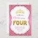 Dourada Confetti Princesa 4.º Convite de Aniversário... convite para comemorar seu aniversário de criança. Convide pessoas para a sua festa com este design incrível. Um belo convite de aniversário é uma combinação de excelente para o seu aniversário de princesa!