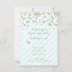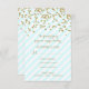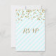 Cartões RSVP de Casamento com padrão de listras azul e branco do céu pastel claro com confete de cor dourada e letras de estilo manuscritas. Personalizável com seus detalhes de casamento, disponível em muitos produtos de casamento correspondentes.