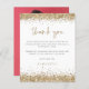 Foto Glitter Dourada Do Orçamento 50º 50º Obrigado. Um alternativo de 4,5 pol x 5,6 pol com preço inferior. Disponível em um STOCK DE CARTÃO SEMI-GLOSS 110 lb, que é a opção padrão (mais espesso para convites), OU um STOCK de PAPEL THINNER FINISH 80 lb FINISH (ideal para gabinetes). Bordas de falso brilho em ouro estão no topo e no fundo na frente e substituam a foto no verso por uma favorita do seu partido. Obrigado, está em um script de escrita manual definido na coordenação do ouro. Personalize facilmente o resto do texto. Você também pode alterar a cor do texto e do plano de fundo por meio da opção personalizar mais, se desejar.
