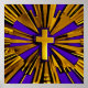 Dourada cruz com raios roxo e dourado. Criado com o uso do software AI.