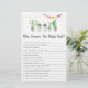 Esses adoráveis que conhecem as melhores cartas da noiva são uma atividade de Chá de fraldas divertida. Simplesmente passe-os durante o chá onde os convidados se divertirão a responder a perguntas sobre a noiva! A pessoa com as vitórias mais corretas! O design apresenta suculentos de aquarela com acentos de brilho dourado e sinalizadores de fiesta colorida.