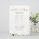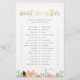 Um jogo de chá de panela editável onde os hóspedes têm de verificar a escolha que pensam que a noiva escolheria. A pessoa com os pontos mais corretos ganha! Este design apresenta uma elegante letra de script, folha de ouro falsa e um arranjo floral cor-de-rosa na parte inferior da página. Cartões se revertem a um belo padrão das mesmas flores de aquarela. Visualize a coleção vinculada nesta página para correspondência de papelaria de chá de panela ou visite nossa loja para ver mais jogos de chá de panela.