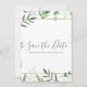 Procurando um convite elegante e chique para salvar o dia do seu casamento de primavera ou verão? Não olhe mais do que nosso design botânico impressionante! Apresentando delicadas folhas e galhos verdes sobre um fundo verde-claro, este convite é a forma perfeita de dar o tom ao seu dia especial. A frase "Salvar a Data" é elegantemente impressa em um script verde em um fundo branco nítido, deixando muito espaço para você personalizar com seus próprios detalhes.