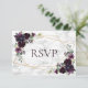 Moderno e moderno, este convite de casamento RSVP design apresenta uma geometria de ouro falsa embelezada com verde-aquarela eucalipto e arranjos florais roxos de ameixa, sobre uma textura de mármore branco sujo, com "RSVP" em uma cor roxa correspondente. As opções de refeições são incluídas, que são facilmente personalizadas, também no tipo roxo. Para remover as escolhas de refeições, criamos um vídeo de como fazer para você aqui: https://youtu.be/ZGpeldQgxoE Parte de um jogo de casamento correspondente. Entre em contato com o designer para variações de design. Convidados Elegantes de Direitos Autorais. Todos os direitos reservados.