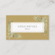 Um elegante modelo de cartão de negócios personalizado, com coloração aquática botânica, folhagem verde, sobre fundo dourado. Um design de chic e profissional que projeta uma imagem profissional confiante. Projetado por Thisnotme©