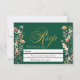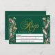 Um design elegante com flores silvestres coloridas e uma palavra de ouro 'Rsvp'.