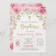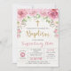 Menina Rosa e Dourada Convite Batismo Apresentando flores cor-de-água rosa e letras douradas