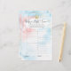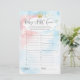 Este cartão de jogo de chá de fraldas apresenta um script moderno em fundo cor-de-água azul rosa, perfeito para a festa de revelação de gênero.