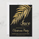 Frentes brilhantes de palma de ouro brilhante em preto com sua festa de Natal SAVE OS detalhes da DATA em letra chic. ALTERE o texto, as fontes, as cores da fonte, até a cor do plano de fundo. Designs são ilustrações/gráficos impressos planos - NÃO É UM GELO DOURADO REAL. Selecione Matte para o papel mais pesado. CONVITES DE FESTAS, placas rsvp e mais itens em nossa loja —> http://bit.ly/2JQANWZ <—