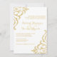 Este elegante e casamento vintage convite apresenta um delicado embelezamento damasco de ouro sobre fundo branco. Perfeito para um glam vintage ou um casamento com o tema da arte.