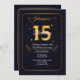 Um convite de aniversário elegante da Quinceañera com fundo azul-preto profundo e o número 15 em ouro. O cartão é fácil de personalizar com seu texto, fonte, cor da fonte, opções de forma de papel e escolha do tipo de papel. Não exatamente o que você está procurando? Todos os nossos produtos podem ser personalizados para atender às suas necessidades sem custos adicionais. Basta entrar em contato conosco em askpixieprints@aol.com. Coordenando os produtos disponíveis: Apenas nos pergunte!