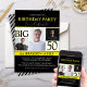 Crie uma festa personalizada com estes 50º Convites de Aniversário Dourados Modernos. Adicione 3 fotos, personalize todo o texto do convite. Mude o ano e comemore uma 30, 40º, 50º, 60º ou qualquer festa de aniversário de criança! Personalize todos os elementos do design para criar o seu perfeito e simples, mínimo e exclusivo preto e branco sobre o convite para o tema da colina! A combinação perfeita de tipografia e design geométrica simples faz disso um favorito versátil!