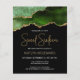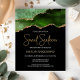 Este convite de aniversário de 16 anos da Trendy apresenta uma imagem de aquarela de um geode agado em tons de verde com realces de ouro falsos. As palavras "Doce Dezesseis" aparecem na falsa brilha dourada em letra decorativa moderna de escrita manual. Personalize-o com o nome do honroso em texto dourado e os detalhes em branco. A mesma imagem verde agate aparece no lado oposto.