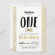 Celebre um dia especial com este dia de aniversário de ouro e preto moderno! Este design apresenta um gráfico de gravata de arco giro e tipografia de brilho dourado.