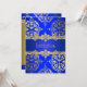 Modelo de convite de festa em damasco dourado azul. Elegante azul marinho real com modelo de convite de festa em damasco azul e dourado. Adicione seus detalhes na frente e no verso simplesmente escolhendo o botão laranja "Personalizar!" para começar a adicionar os detalhes do seu evento, estilo de fonte, tamanho e cor da fonte e texto. Por favor, note que todos os desenhos de convite que você encontrará na Zazzle são gráficos impressos em papel simples sem joias, laços, relevos, dourados ou peças ou partes adicionadas.