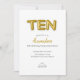 Celebre dois dígitos com este moderno convite fotográfico de 10 anos para o balão de ouro! Apresentando "TEN" em letras de balão de folha de ouro falsas e espaço para a foto do seu filho, este design combina o estilo ousado e moderno com charme de eterno. Todo o texto é totalmente personalizável, fazer é fácil adicionar o nome do seu filho, os detalhes da festa e as informações de RSVP. Perfeito para comemorações de marcos, este convite para fotos funciona para meninos ou meninas e adiciona um toque pessoal e elegante ao seu grande dia.