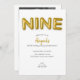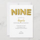 Celebre nove anos de alegria com este moderno balão de ouro 9° convite para fotos de aniversário! Apresentando "NINE" em letras de balão de folha de ouro e espaço em negrito para uma foto personalizada, este design limpo e elegante torna o planejamento partidário simples e na moda. Personalize facilmente o texto com o nome do seu filho, os detalhes do evento e as informações de RSVP. Ideal para rapazes ou raparigas, este convite à fotografia de eterno acrescenta um toque festivo e personalizado ao dia especial do vosso filho.