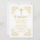 O nosso belo convite para o batismo dourado falso moderno apresenta um quadro de rolagem vintage, uma cruz e uma fonte batismo de rico chic num fundo branco popular. Sacudir nosso batismo convidar para ver um brilho dourado correspondente para um toque especial extra. Um convite perfeito para um bebê ou uma menina. Visite nosso compro para este convite em uma grande seleção de cores modernas e modernas.