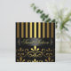 Convite Elegante Dourado/Black Stripe & Swirl Sweet 16