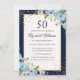 Dourado Blue Flóral Sparkle 50º Convite de Anivers