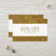 Personalize facilmente esses cartões de comprovante de desconto usando a seção "personalizar este modelo" ou clique no link "personalizar mais" para alterar os estilos de fonte, as cores e o layout para o conjunto. Há também espaço na parte de trás do cartão para acrescentar mais texto. Perfeito para varejo, Beauticistas, Bares, Restaurantes, etc.