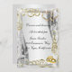 Bonito com espirais de ouro, sotaques de diamante e alianças de ouro. Este belo cartão de recepção está pronto para ser personalizado para o seu dia especial de casamento. Personalize a placa alterando o texto nos campos fornecidos frente e verso. Você pode alterar o estilo, o tamanho e a cor da fonte, bem como o tipo e o estilo do papel.