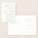 Um convite de casamento tradicional, clássico e elegante do ramo de oliveira, com uma coroa e um roteiro de casamento GOLD FOIL na frente e no verso deste clássico convite dobrado de 5 por 7 polegadas. Dentro os seus detalhes e o texto da resposta, num formato clássico de casamento. Uma boa opção para uma placa dobrada em vez de uma placa plana. Também disponível no tamanho menor de 4 por 5 polegadas.