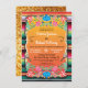 Anunciação de Casamento Fiesta Mexicano Colorida. Apresenta papel picado brilhante inspirado por flores, sotaques dourados FAUX, maracas e um fundo mexicano asteca. Muitos itens de casamento correspondentes a este item