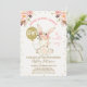 Meninas Floral Rosa Dourado Convite para Chá de fraldas Coelho Convidado Coelhinho Bonito e convite para chá de fraldas de moça de balões de ouro falso. Este design também apresenta vários arranjos florais e alguns pontos falsos de ouro. Esta é uma maneira doce de convidar convidados para um chá de fraldas de uma garota.