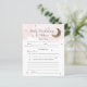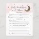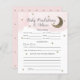 Este lindo cartão de conselhos e predições para bebês apresenta um fundo branco com estrelas falsas de ouro e a lua crescente. O verso apresenta padrões de estrelas douradas brilhantes em um fundo de rosa claro. Altere a cor de fundo e personalize para suas necessidades. Você pode encontrar mais produtos correspondentes na minha loja.