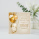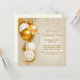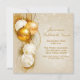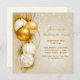 Um convite impressionante do feriado com ouro sparkling e os ornamento brancos, pendurando pela miçanga do ouro e pelas fitas no ouro tonificou o fundo com flocos de neve. Personalize para uma festa natalícia especial.