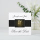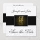 Design preto, marfim e monograma Dourado E por Elke Clarke ©. Personalize com suas informações de casamento. Crie um olhar luxuoso e o sentimento real de anunciar seu dia especial.
