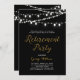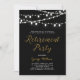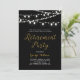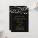 Celebre um dia especial com este convite de festas de ouro na moda! Este design apresenta uma tipografia de na moda com script com textura dourada brilhante e cadeia de luz sobre fundo preto. Você pode personalizar a cor de fundo.