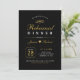 Este elegante convite de janto de ensaio de casamento mostra tipografia de ouro e fundo preto. Você pode personalizar o texto, as fontes e a cor de fundo.