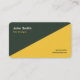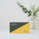 Um cartão de visita de dois tons em cores douradas e verdes da floresta com informações de contato do cheio na parte traseira. Essa placa de bloco de cor poderia ser adequada para qualquer atividade comercial, como design, marketing, consultores, freelances, CEO, etc.