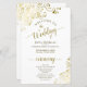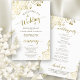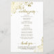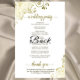 Estes programas de casamento são elegantes e saborosos, enquanto ainda são favoráveis ao orçamento. O design apresenta um formato de folha falsa do ouro do ornamentado com texto dourado sobre fundo branco. A tipografia apresenta uma caligrafia antiga em script, e há espaço para detalhes sobre a cerimônia, a festa noiva e um obrigado curto para você.
