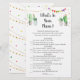 Estas elegantes "What's In Your Phone Cards" são uma forma excelente de se divertir com o seu Chá de fraldas e é garantido ser um grande sucesso! Simplesmente passá-los durante o Chá de fraldas, onde os convidados se divertirão a passar pelos seus telefones celulares e a verificar os itens que têm na lista. A pessoa com mais pontos ganha! O design apresenta suculentos de aquarela com acentos de brilho dourado e sinalizadores de fiesta colorida.