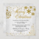 Convite para Festa de Férias de Natal Dourado. Floco de neve de ouro elegante design de Natal Feliz.