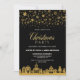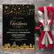 Um na moda preto com flocos de neve dourados convite de festas de Natal para você convidar seus amigos e entes queridos para celebrar a época festiva.