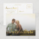 NOTA - Este produto é folha de ouro falsa... ele dá a elegante ilusão de embelezamento de folhas sem o alto custo. Uma magnífica tipografia de folha de ouro falso na frente deste cartão postal de designer, no qual você pode fazer upload com seu próprio noivado/salvar o retrato fotográfico de data. Personalize fácil e rapidamente este designer impresso profissionalmente, salve o cartão-postal de data aqui e agora digitando apenas o texto de exemplo e adicionando sua própria fotografia. Escrita em ouro elegante, chic, simples e clássico/tipografia cursiva