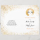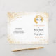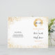 A design de coleção de casamento do 'Dourado Leaf Spry' traz a bochecha para o chic. Design minimalista e simples. Um papel de carta de casamento de dois lados, texto de anúncio num local e no outro lado, a noiva e o noivo, em cima de um selo de folha de ouro, têm duas iniciais. Há duas versões de um selo de folha dourada; um traço de pincel circulado oco, e o outro é como um derramar de tinta suja.