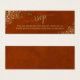 Este cartão miniatura é perfeito para adicionar um endereço online do Rsvp aos seus convites para o casamento. Apresenta um elegante design de cor laranja de ferrugem marmoreada ou cinzenta queimada, com caracóis de folha fina de ouro e espirais e caligrafia de escrita, com RSVP. Há espaço para o URL do seu site e um prazo de resposta.