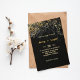 O design apresenta um fundo preto clássico com flores e ornamentados e redemoinhos nos cantos. A tipografia inclui a inscrição em rico para um estilo simples e elegante. Uma maneira maravilhosa de convidar seus amigos e família a compartilhar sua alegria no seu dia especial. Selecione Personalizar para alterar as Informações antes da compra.