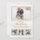 Um design de cartão festivo de Natal que mostra quatro de suas fotos favoritas, fechadas com uma borda dourada em um escudo branco de madeira de fazenda. O "Feliz Natal" aparece no centro na tipografia do guião dourado. a parte de trás da carta tem um padrão de floco de neve branco e dourado. Personalize este cartão com fotos de feriado exclusivo com seus nomes familiares. Projetado para você pelo Blackberry Boulevard.