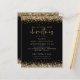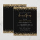 Um alternativo de 4,5 pol x 5,6 pol com preço inferior. Disponível em um STOCK de PLACA SEMI GLOSS de 110 lb semelhante em espessura a um cartão-postal. Há um por folha. Dourada Faux Glitter Festa de Natal Black Invite. Uma borda de brilho está em cada lado superior e inferior, e o Natal está em um script de estilo de letra minúscula definido. Personalize facilmente o texto para seus próprios detalhes. Você também pode alterar as cores do texto e do plano de fundo por meio da opção personalizar mais, se desejar.