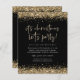 Dourada Glitter É Natal Vamos Festejar Convidado Negro. Um alternativo de 4,5 pol x 5,6 pol com preço inferior. Disponível em um STOCK DE CARTÃO SEMI-GLOSS 110 lb, que é a opção padrão (mais espesso para convites), OU um STOCK de PAPEL THINNER FINISH 80 lb FINISH (ideal para gabinetes). Os envelopes são um extra opcional e são ligeiramente maiores que o tamanho da placa. Estilo de brilho para sua coleção festiva com brilho dourado nos bordos superior e inferior de ambos os lados e em um roteiro de estilo de escrita manual para a tipografia do título principal em um fundo preto clássico. Personalize facilmente o resto do texto para seus próprios detalhes.