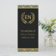 Chave grega preta e dourada e trecho de louros cerimônia de casamento e programa de festas com iniciais de louros e borda com chave grega ou Meander ou borda grega de feto em ouro e preto. Esta elegante e vintage design do mundo antigo é perfeita para um tema de casamento grego e/ou grego, independentemente do local onde ocorre na Grécia ou em qualquer outro lugar. É uma parte modelo de um casamento completamente personalizável. Também pode ser feito em termos gregos ou bilingues.